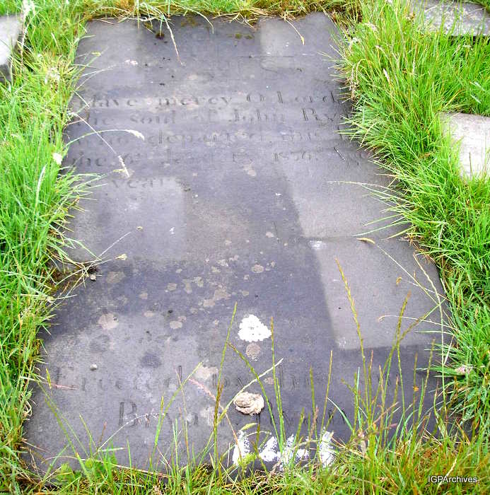 mayo-kilmeena-old3 -- Have Mercy O Lord on the soul of John Ryan who departed this life the 6th January 1856 aged 78 years. Erected by his son Bryan Ryan.