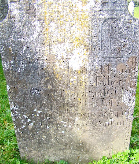 tipperary-ballymackey-coi -- Difficult to dicipher. Erected by Darby Meara in memory of his Father ? Meara who departed this life June the 12th 1799 aged 84 years.